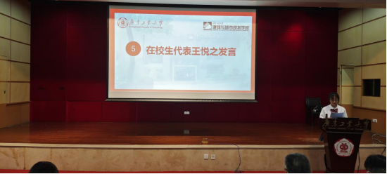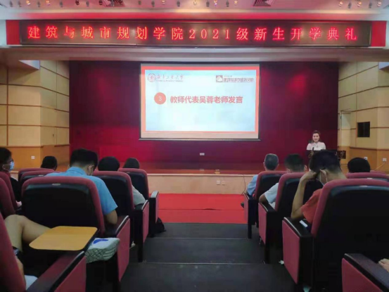 教师代表吴蓉老师欢迎同学们的到来,希望他们在接下来的学习生活中明确目标,做好职业规划,养成良好的生活习惯,努力成为一个知书达理、受人尊敬的人;在校生代表梁桓潇和新生代表王悦之同学也都相继发言,表达了自己对领导、老师的感谢和对未来的满腔热情。2021级新生都受到了很大鼓舞,对接下来的学习、生活充满期待。
