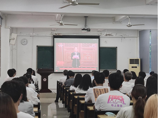 组织教师党员、全体学生党员和团学骨干代表在二号楼314教室和南苑食堂集体收听收看庆祝中国共产党成立100周年庆祝大会现场直播,聆听习近平总书记发表的重要讲话,感受党的百年光辉历程。