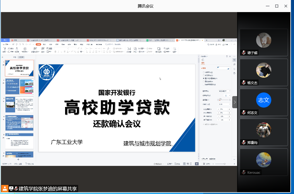 于6月11日上午通过腾讯会议平台举行建筑与城市规划学院2021届贷款毕业生还款确认暨诚信教育会议。会议由辅导员张梦迪老师主持,学院本科、研究生毕业班辅导员袁晓聪老师出席了本次会议,全体2021届贷款毕业生参加了会议。