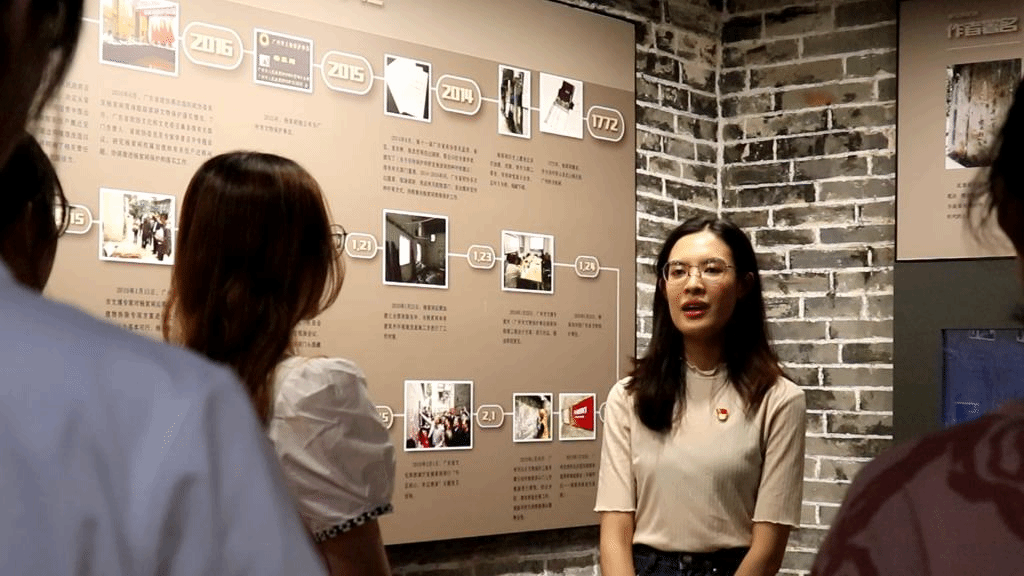 驻足在“红色据点杨家祠”展厅,邝颖绮同学立足于本专业古建筑修复的知识给大家上了一堂生动的微党课。杨家祠是2019年通过古建筑保护修缮并挖掘其中蕴含的红色革命故事后,作为这个城市的红色精神的一部分重新回到大众视野中。因此,邝颖绮同学提出,作为建筑学类的学生,我们不仅仅要掌握在建筑上所采用的修复还原技术,更应该关注和传承古建筑的文脉与精神。杨家祠所传承的正是这样一种文脉与精神:在国力积弱的年代,先烈们致力于唤醒民族觉悟,为了民族独立而牺牲;而在今天中华民族面临百年未有之大变局的时代,我们为了民族崛起而奋斗。我们虽与先烈们处在不同的时空,有着不同的任务,却承载着实现中华民族伟大复兴相同的精神与信念。我们学习古建筑保护,不应该忘却我们身上肩负的专业使命,那就是留住城市记忆,保护革命遗产文物,体现我们这代人的担当和忠诚。