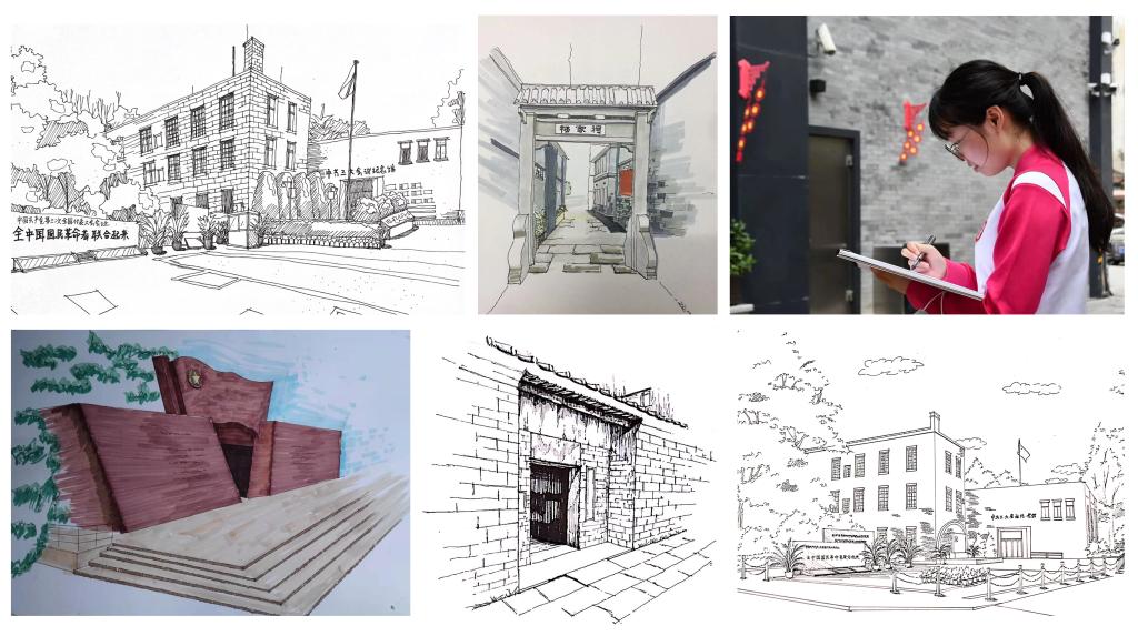同学们前往杨匏安烈士曾经战斗过的地方开展红色手绘活动