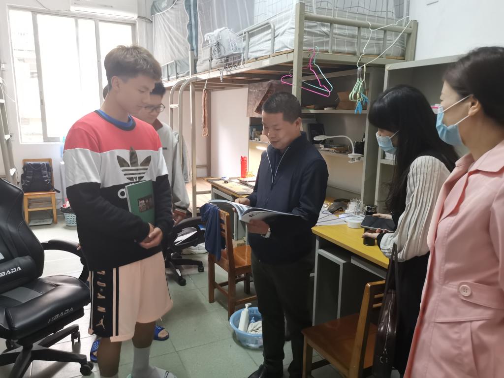 走访中,老师们与学生们进行面对面的亲切交流,询问同学们假期生活情况、家庭情况以及对新学期的适应情况;鼓励同学们做好返校后宿舍的清洁卫生,早睡早起,养成良好的生活、学习习惯,做好宿舍安全防范;充分做好下周一第一次课的准备;