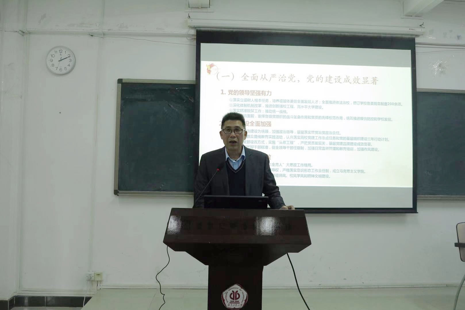 在东风路校区2号楼314会议室召开全体教职工大会,传达学习学校第五次党代会精神。