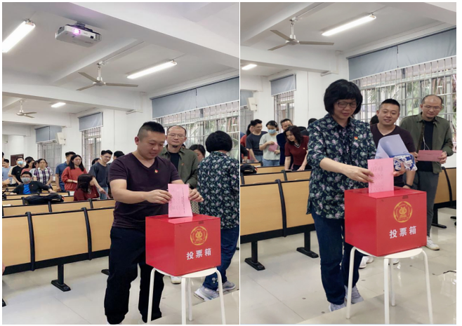 学院党委副书记、院长蔡云楠同志宣读了学校党委《关于学校第五次党代会代表候选人预备人选的批复》。大会严格遵照《中国共产党基层组织选举工作条例》有关规定执行,依次通过了选举办法、监票人和计票人名单、代表候选人名单。随后,监票人和计票人分别按规定完成清点人数、检查票箱、发放选票等工作。经大会无记名投票差额选举,钟兆明、蔡云楠、刘旭红、江海燕、李晓伟、李志、梁芳婷等7位同志当选为学校第五次党代会代表。至此,本次选举工作顺利完成。