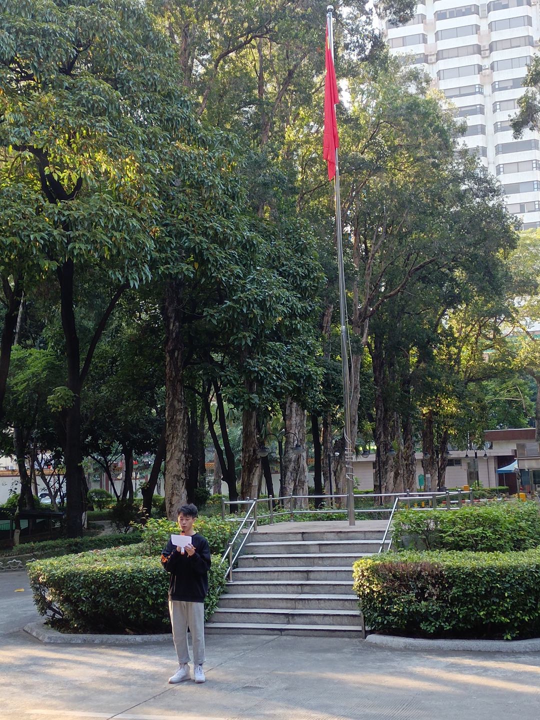 2020级建筑类1班的郭迪徽同学以“新起点,新征程”为主题,讲述了自己作为20级学子入学一个多月以来的感受和收获,也鼓励同学们认真学习专业知识,努力做到为广东发展做贡献,为国家发展做贡献。