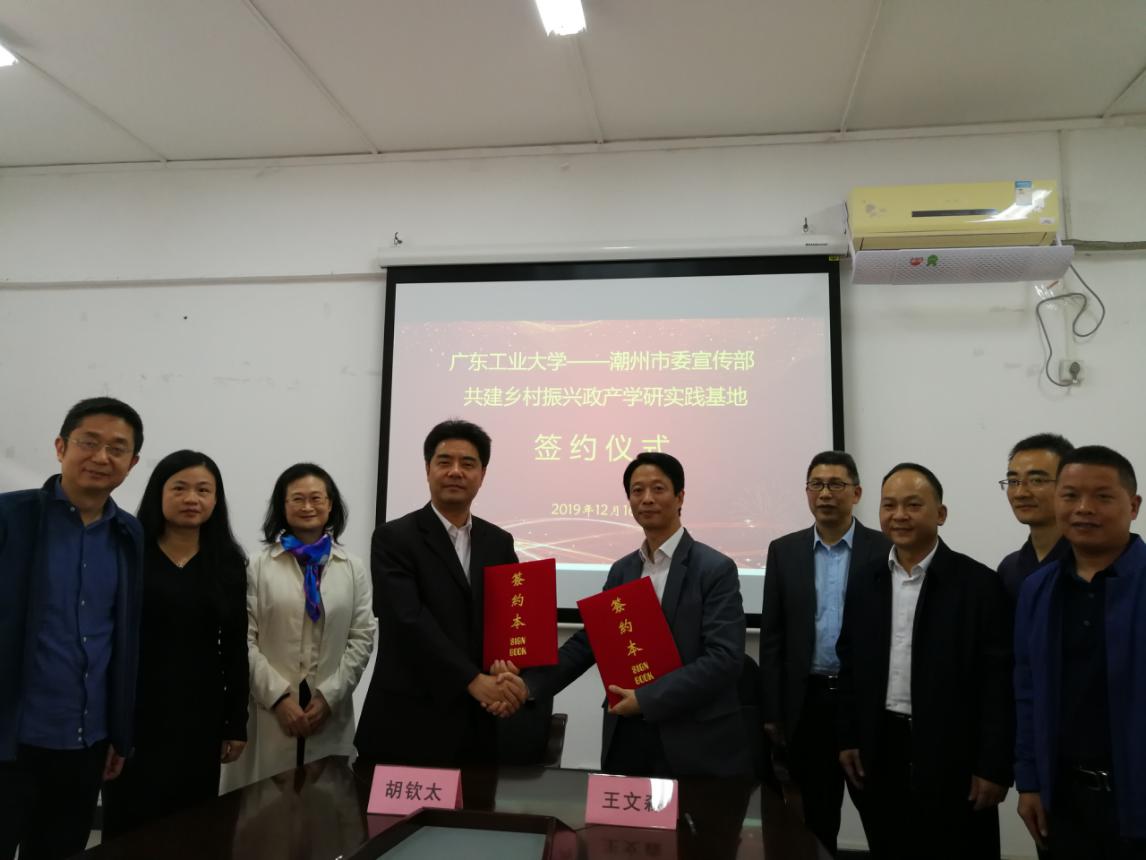 12月16日上午,学校与潮州市委宣传部举行了共建乡村振兴政产学研实践基地签约仪式,学校党委副书记胡钦太,潮州市委常委、宣传部部长王文森分别代表学校与潮州市委宣传部签订共建协议。学校党委宣传部部长黄学茭、潮州市委宣传部常务副部长王剑锋、潮州市委宣传部精神文明协调科科长蔡泓、嗨皮漫画