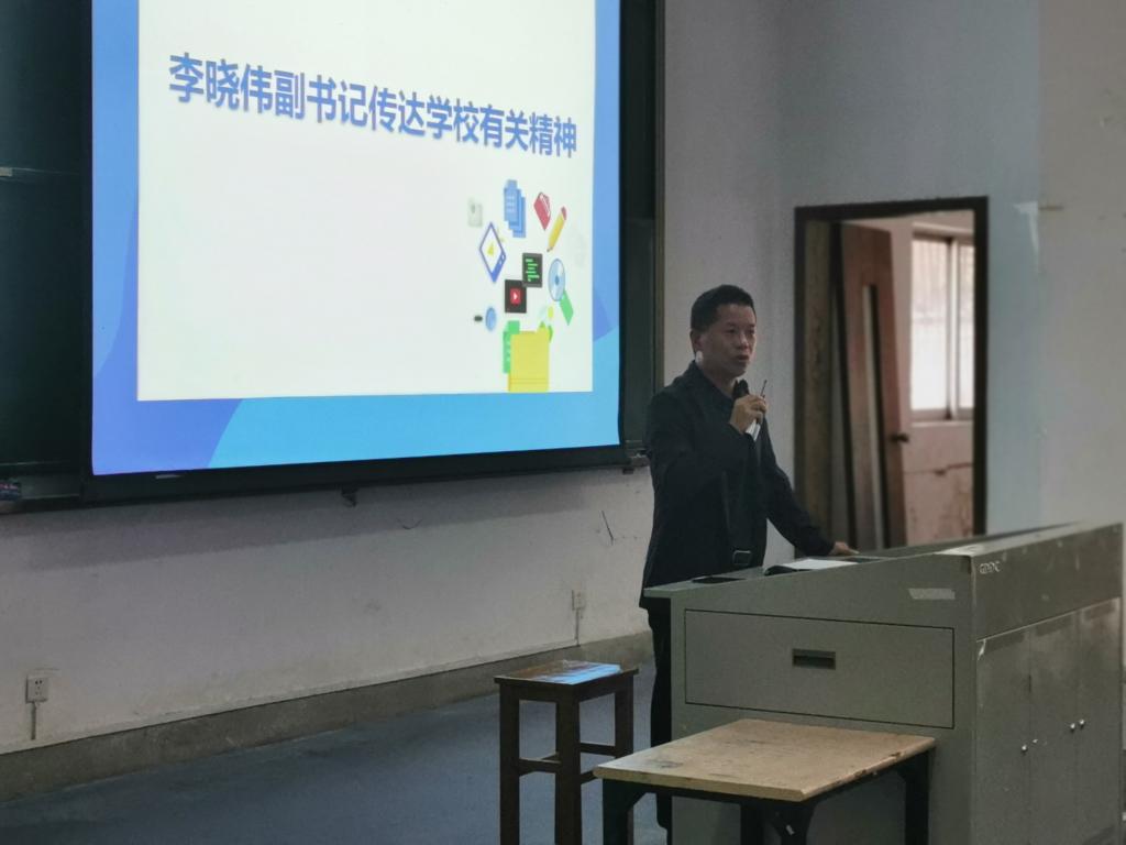 会上,李晓伟老师传达学校教务处有关精神。为进一步提升本科生教育质量,学校从方方面面加强本科生培养,一方面在2019级开始实施早读晚修,目的让同学们养成良好的学习习惯;另一方面自2019级开始实施新的重修制度,目的是让同学们重视日常的学习。最后,他要求同学们从自身做起,严格遵守考试规章制度,坚决杜绝考试作弊、违纪等不良现象。
