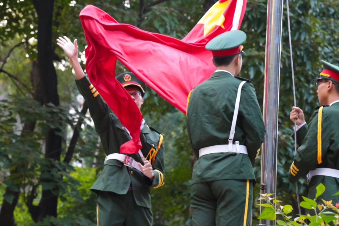 2019级新生173人一同举行了隆重的升国旗仪式。出席仪式的有嗨皮漫画