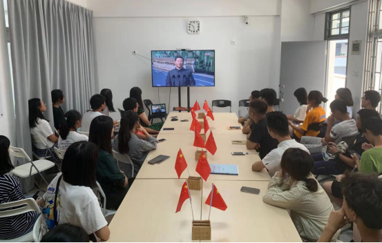 组织国庆假期留校师生分别于学院2号楼314、学生公寓党团活动室集中观看庆祝中华人民共和国成立70周年大会直播。近50名学院师生参与其中。