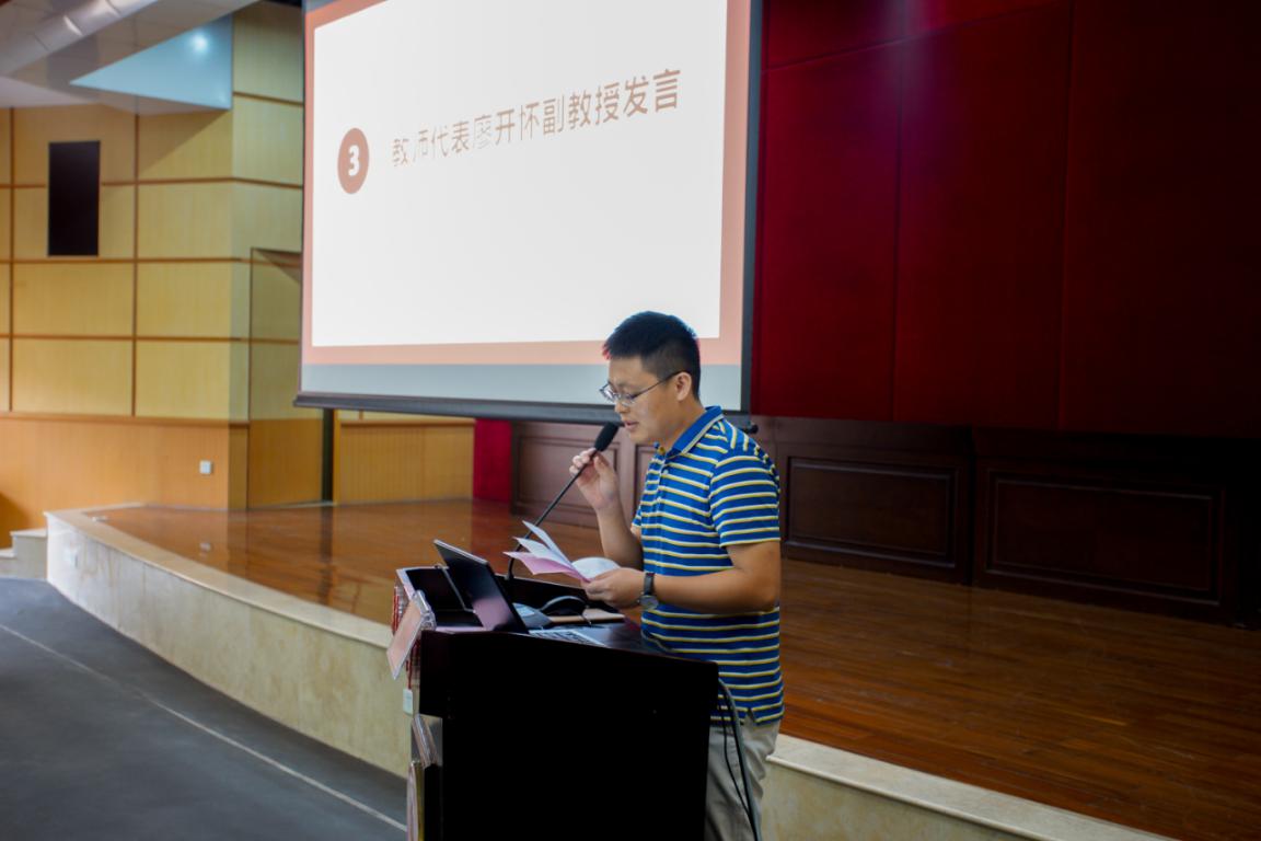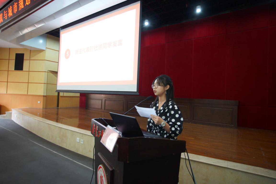 廖开怀副教授作为教师代表上台发言,他鼓励同学们在大学要多培养自己的能力。廖老师认为,第一是要拥有快乐的能力,积极乐观地面对生活的挑战,时刻饱含对生活的热情;其次是要有良好的审美能力,才能知道自身设计的建筑、城规、园林作品是不是好、是不是美;再次是要有较强的思考能力,思考清楚再行动,多积极努力思考,才能获得事半功倍的效果。在校生代表肖丽祺引导师弟师妹早做规划、勤奋学习、权衡好学习和各个方面的关系,注重社会实践,锻炼成更加完美的自己;新生代表孙社瑜代表全体新生感谢学院给大家提供的学习平台,表达自己对专业对学院的热爱,同时和新生们共勉:一是要高度自律;二是要保持较强的自制力;三是要有新时代大学生的责任和担当。
