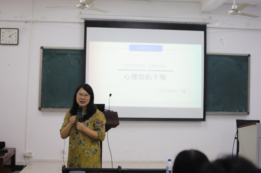 举办校园学生心理危机干预培训会,学校心理咨询中心阎媛老师,学院全体教职工参加了培训会。