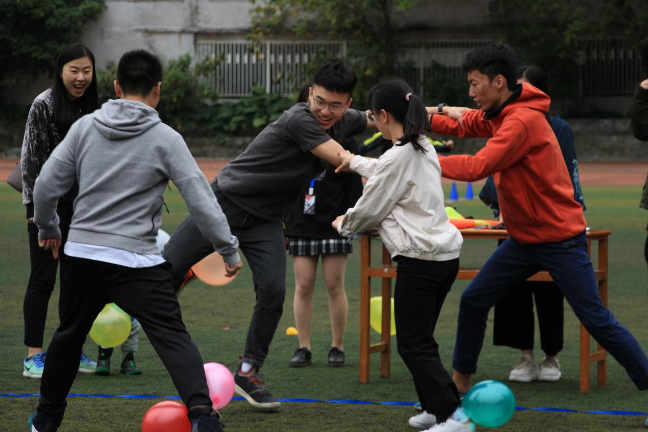 在东风路校区田径场成功举办了第四届主题为“积极参与-心理健康-轻松娱乐-友好团结”心理趣味运动会。本次心理趣味运动会由学院心协主办,青协和红会协办,帮助学生释放心理压力,提高班级同学之间的凝聚力。本次运动会有四个团体游戏与两个摊位游戏组成,团体游戏分别为乒乓接力,点球大战,指点迷津和踩气球,摊位娱乐游戏为扔圈圈和你画我猜,学生会秘书长刘芷含老师、学院心理指导老师贾朝强老师、2017级全体同学和2018级全体同学参加了此次活动。