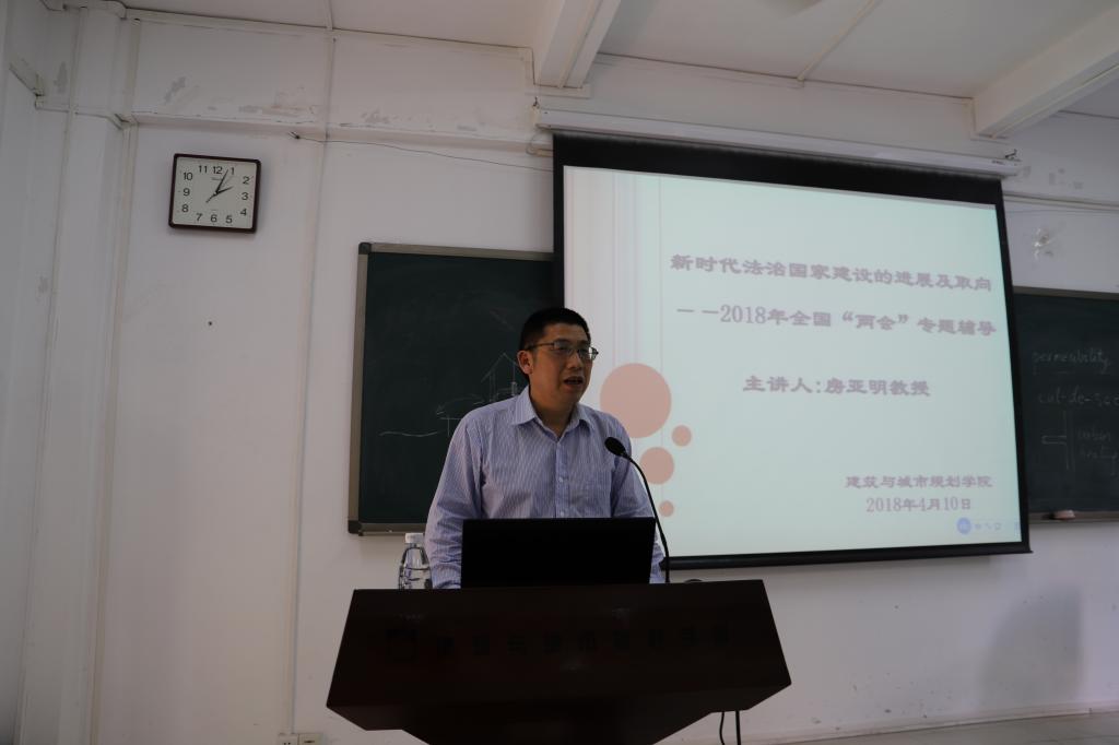 于2018年4月10日下午在学院314会议室召开学习宣传贯彻2018年全国“两会”精神专题辅导报告会,学院党委邀请了政法学院副院长房亚明教授作了题为《新时代法治国家建设的进展及取向》的主题辅导讲座。会议由学院党委钟兆明书记主持,嗨皮漫画