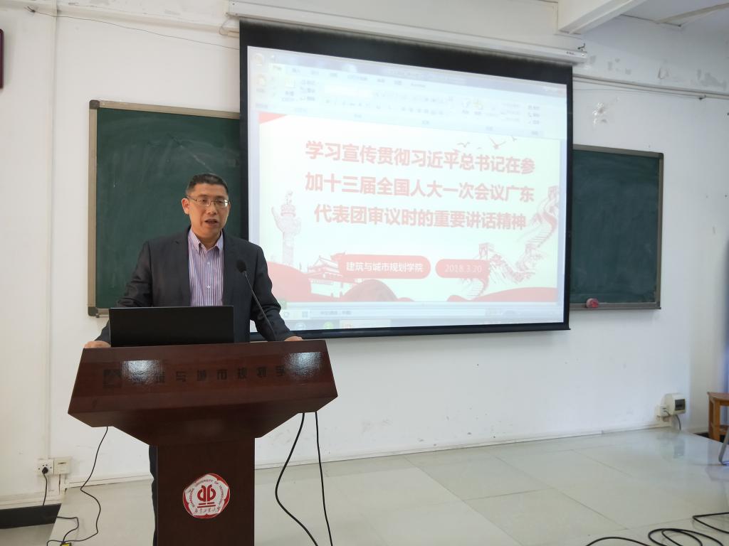3月20日下午,建筑与城市规划学院在东风路2号楼314会议室召开学院新学期工作会议暨传达学习习近平总书记在十三届全国人大一次会议广东代表团参加审议时的重要讲话精神,全体教职工参加了会议。