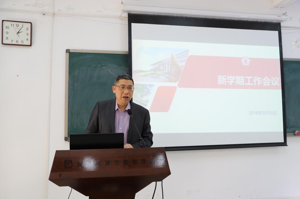 学院党委书记钟兆明首先传达了学校新学期工作会议上陈新书记的讲话精神,在回顾总结学校过去一年所取得显著成绩的同时,指出学校目前面临的机遇及挑战,同时详细介绍了学校2018年的工作布署。钟书记要求全体教职工要深刻领会学校新学期工作会议精神,结合本职工作,齐心协力,以更大作为取得新的业绩。