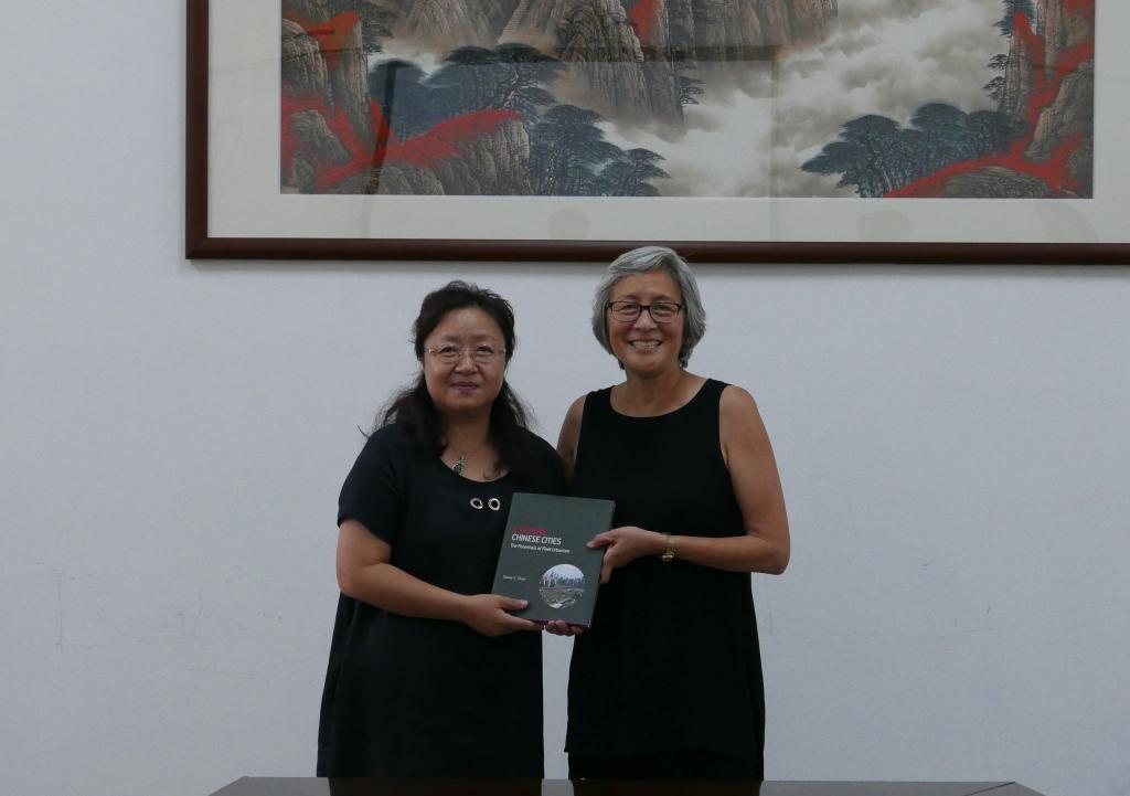 上午10点,Renee教授与朱雪梅院长、周祥副院长以及建筑学、城乡规划和风景园林专业的系主任和骨干教师就学院本科和研究生教学开展教学研讨。在朱雪梅院长简短的欢迎辞后,周祥副院长详细介绍了学院发展历程、院系专业构成、师生情况、专业教学计划等内容。Renee教授侧重结合两所院校在专业设置、师生构成、课程组成和学分分配等方面的异同对加州大学伯克利分校环境设计学院的教学进行讲解,并就教师提问给予详尽解答。教学研讨结束前,Renee教授和朱雪梅院长互赠专著作为留念。