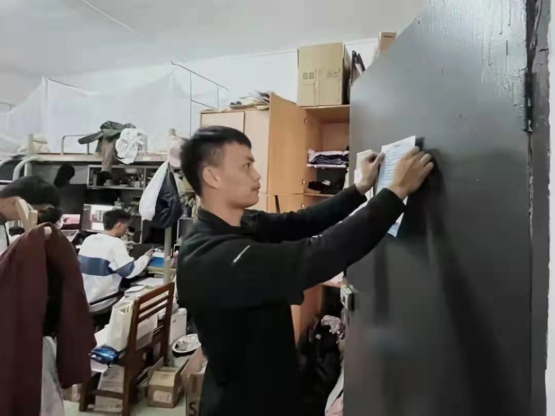2022年3月10日中午,学生会秘书长贾朝强老师、团委•学生会主席团成员慕容炘其与宿舍小组成员一同前往男生宿舍4栋进行“文明宿舍流动红旗”的颁发,同时对各宿舍进行了防诈骗知识宣传。