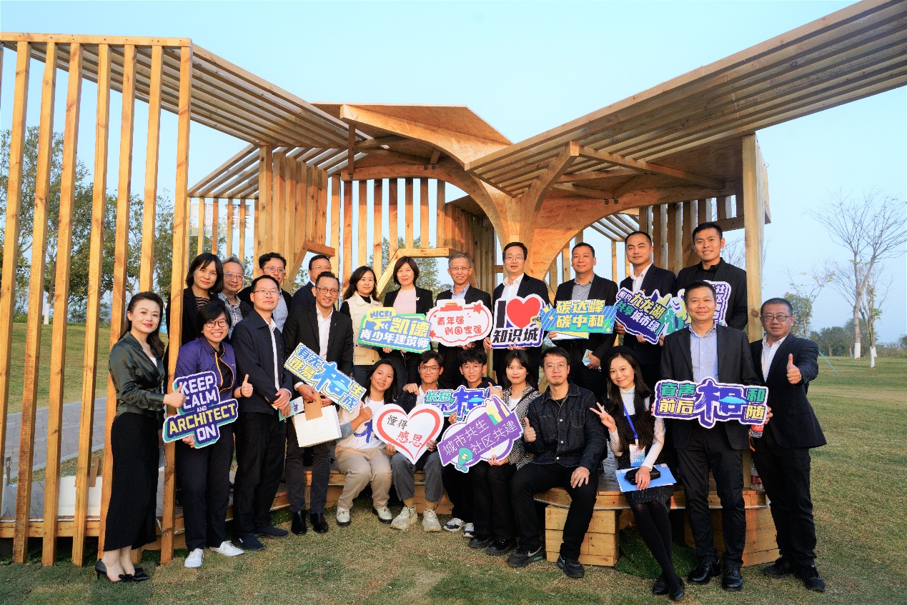 大赛以“相TOGETHER”为设计主题,提炼于老子《道德经》中的“有无相生,难易相成,长短相形,高下相倾,音声相和,前后相随”,体现万事万物相辅相成、相互依存之道。参赛者需在知识城九龙湖主入口至龙腾公园段的指定场地,结合环境和当地文化特色元素并体现大赛主题,设计及营造便民利民的绿色空间。大赛自2021年9月启动,全程历时130天。最终,由政府、企业、设计院权威专家组成的评审团从其中严格评选出6个优秀方案,晋级队伍在高校老师及专家团队的指导下,利用可回收木板、竹材、PP中空板等环保材料,并遵循“国际环保5R原则”营建完成6座兼具观赏美学和实用功能的零碳建筑小品。