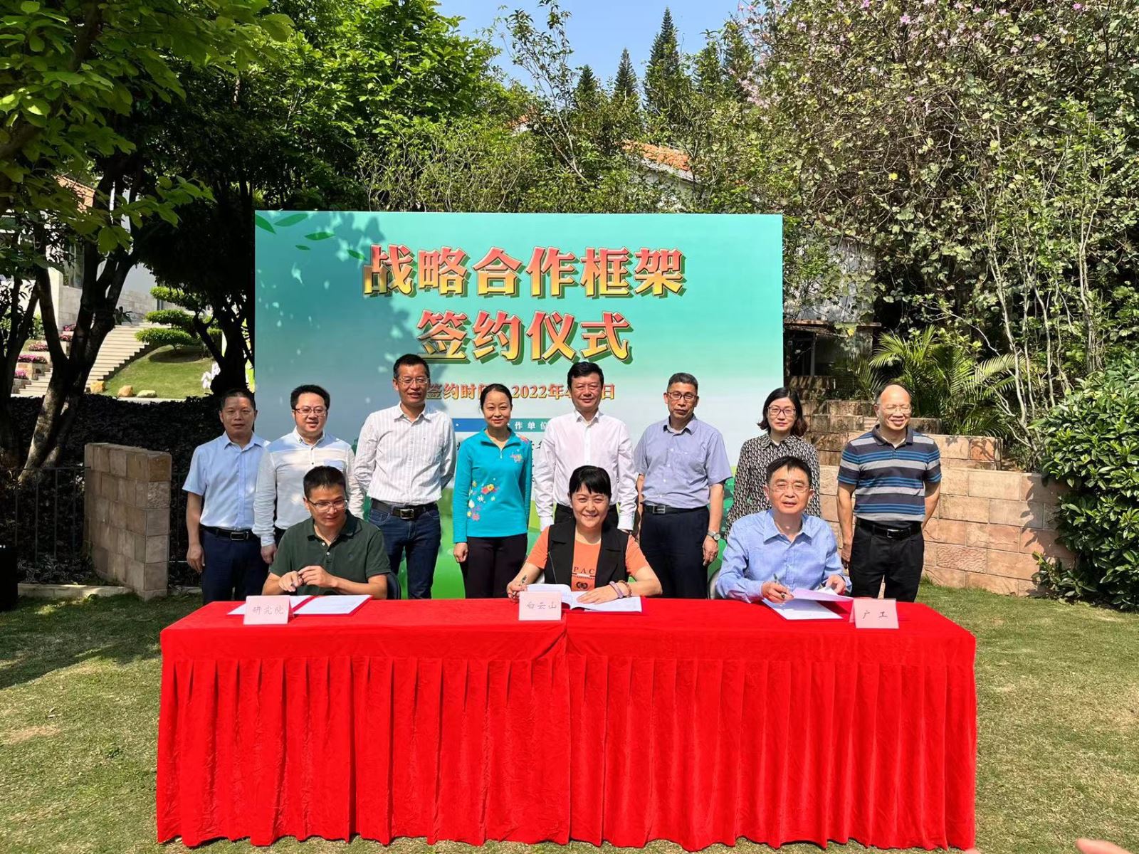 与广州市白云山风景名胜区管理局、华南自然保护与生态修复研究院在云台花园举行战略合作协议签约仪式。白云山管理局党委书记乔永慧、局长王昱、总工程师潘志权,嗨皮漫画