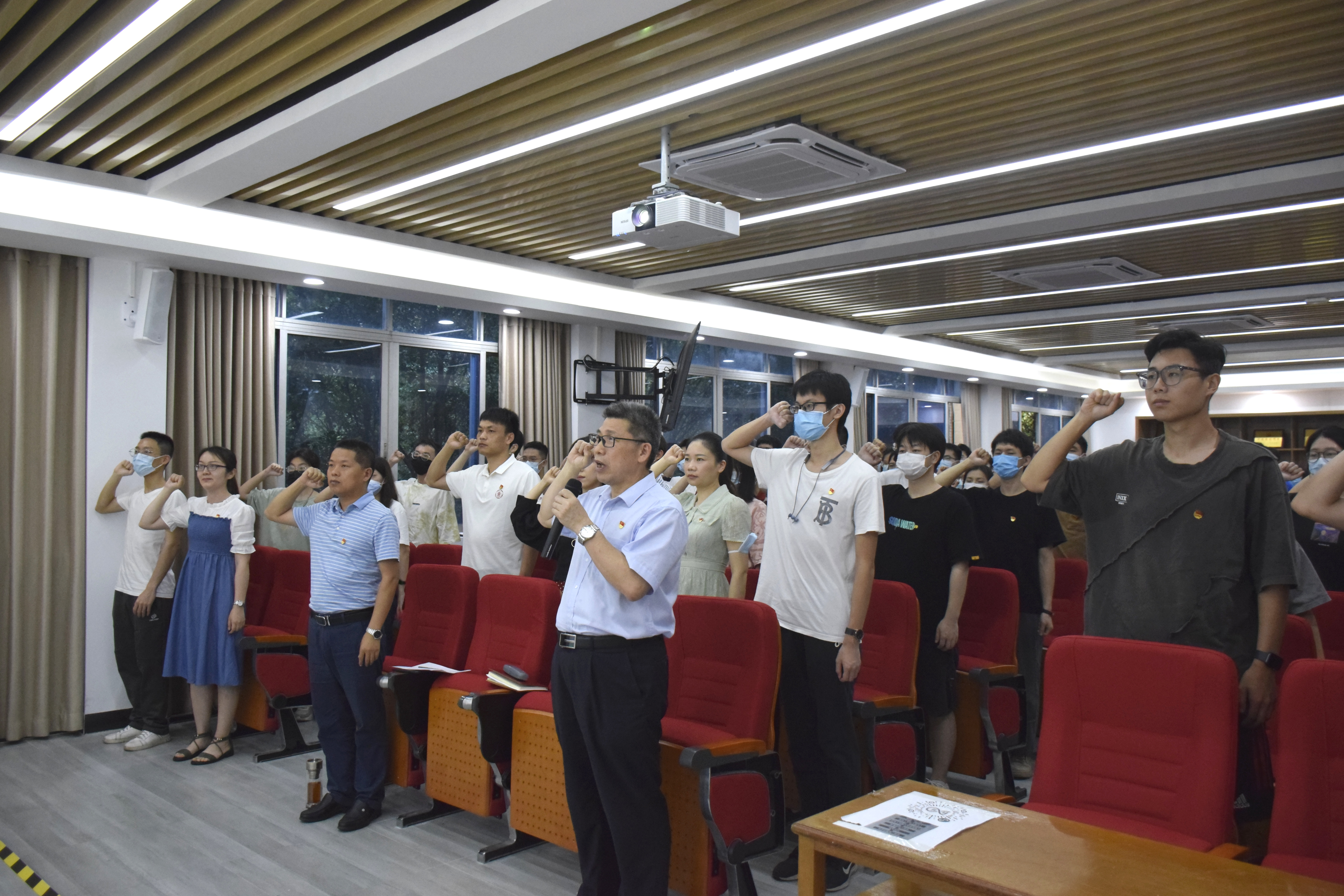 最后,在钟兆明的带领下,全体党员同志重温了入党誓词。党员同学表示今后一定要不断增强党员意识,进一步弘扬奉献精神,发挥党员的先锋模范作用,以实际行动为党旗增光添彩,践行对党的庄严承诺。