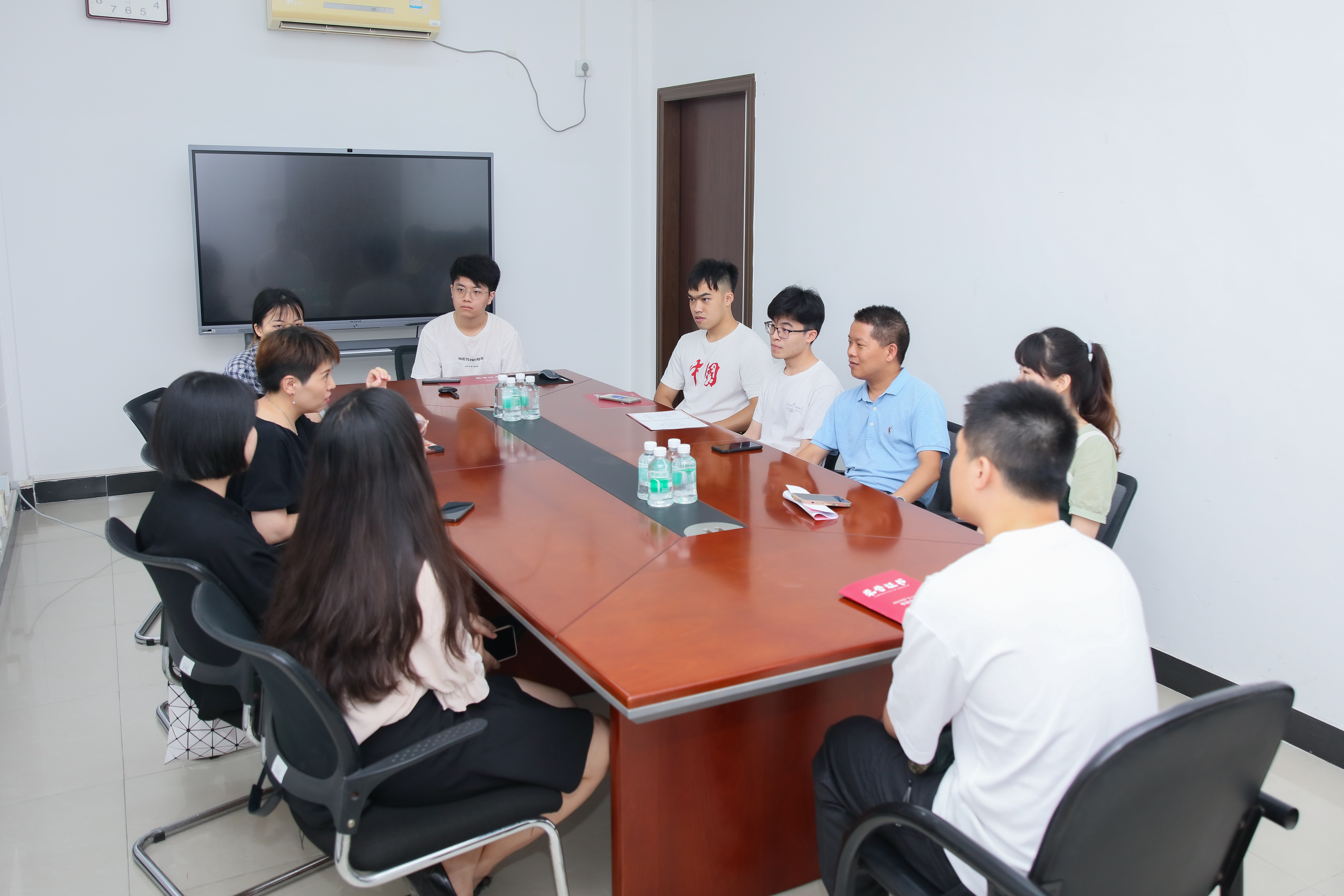 仪式后,企业方代表与获奖学生代表进行座谈,针对职业规划、实习中需要注意的方面、校园到职场的转变和企业招聘时较为看重的素质能力等方面进行交流。李晓伟向华阳代表介绍了毕业生就业情况,希望华阳在招聘时多多关注嗨皮漫画