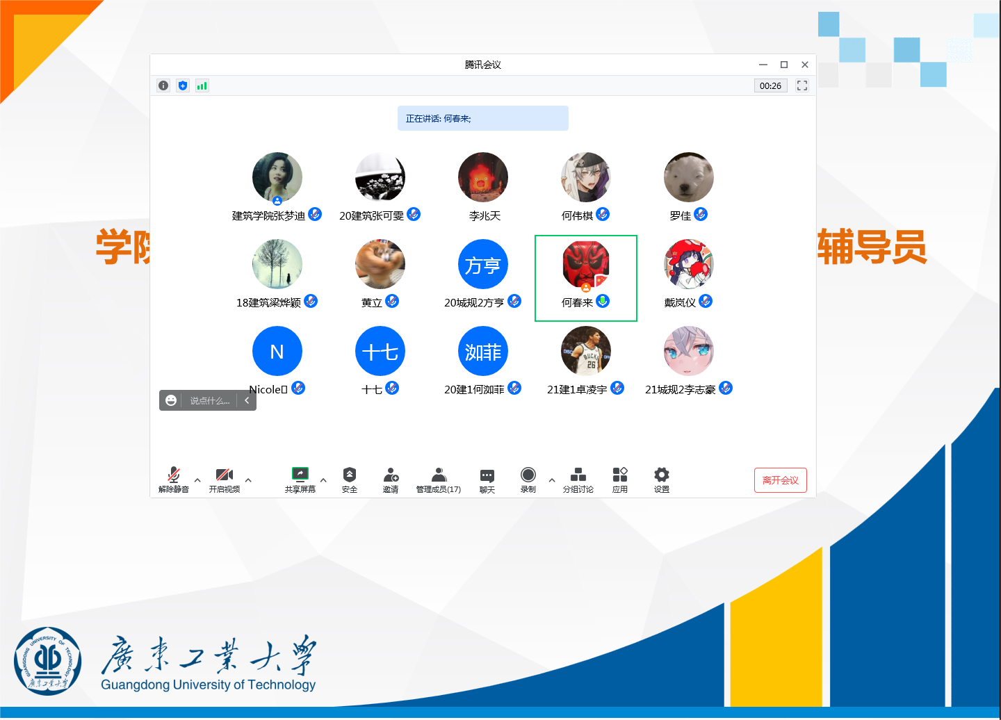 召开2022年秋季学期心理联络员返校工作会议,学校心理健康教育与咨询中心何春来老师、各年级心理联络员和院心协骨干成员参加了会议,会议由学院心理指导老师张梦迪主持。