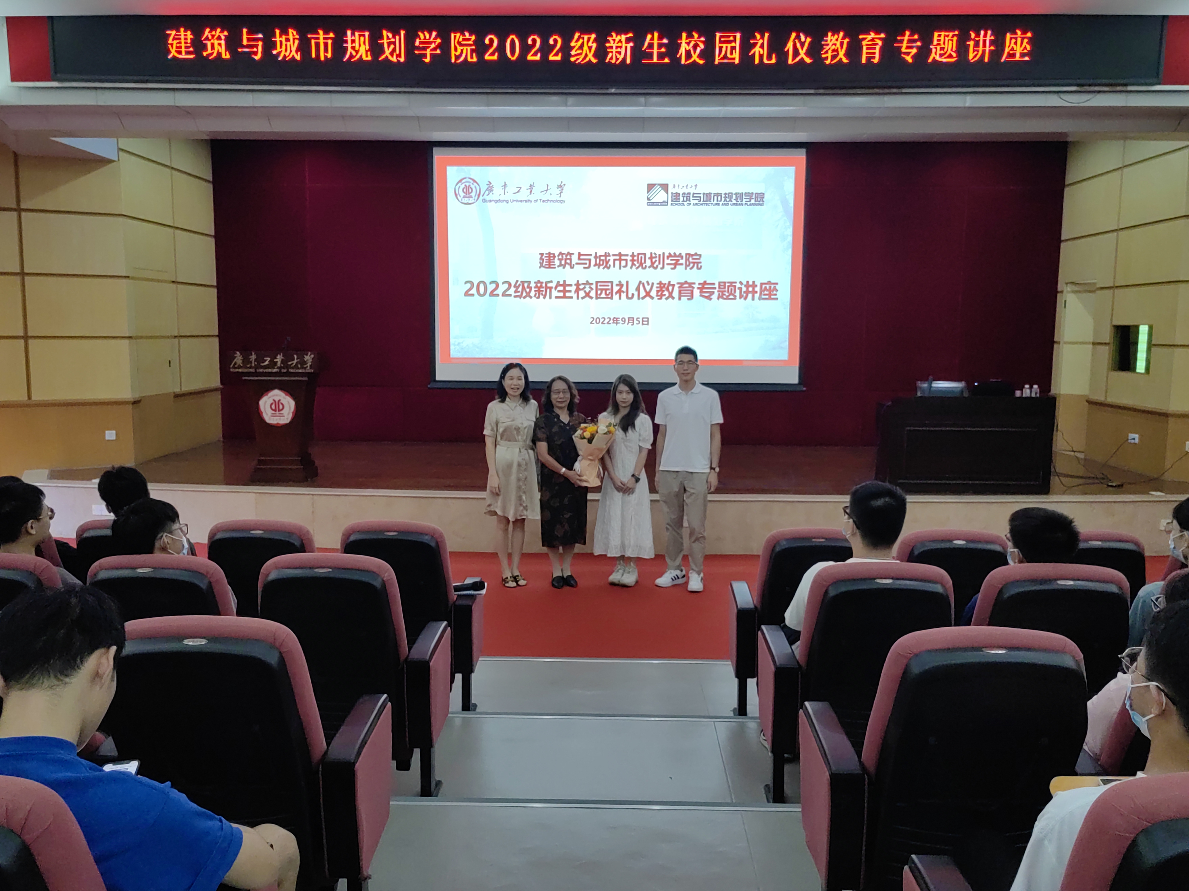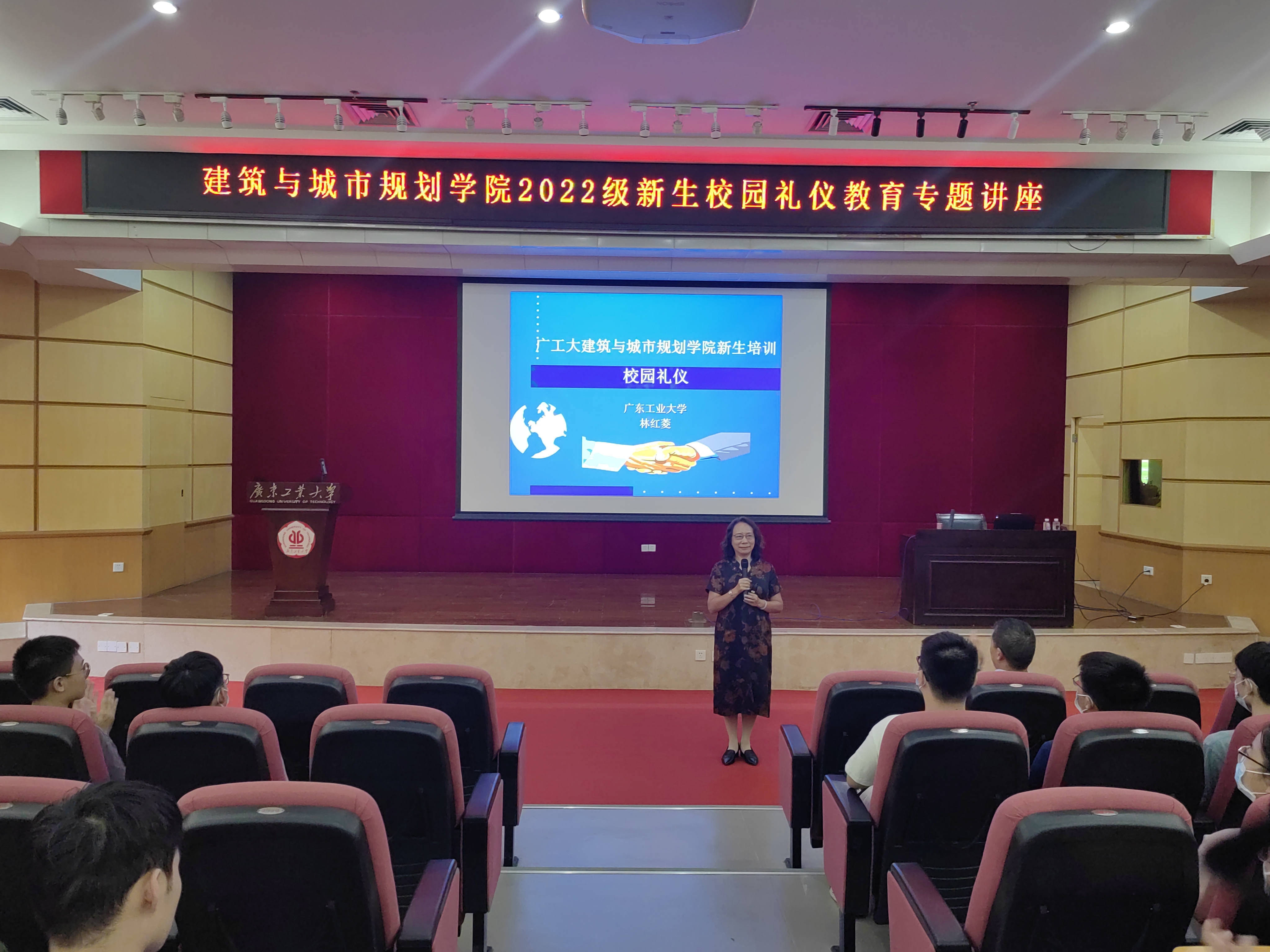 在东风路校区图书馆8楼学术报告厅举行大学生校园礼仪教育专题讲座,邀请管理学院林红菱教授为新生授课。学院党委副书记李晓伟、团委书记刘悦、新生辅导员张展鸿及2022级新生参加讲座。