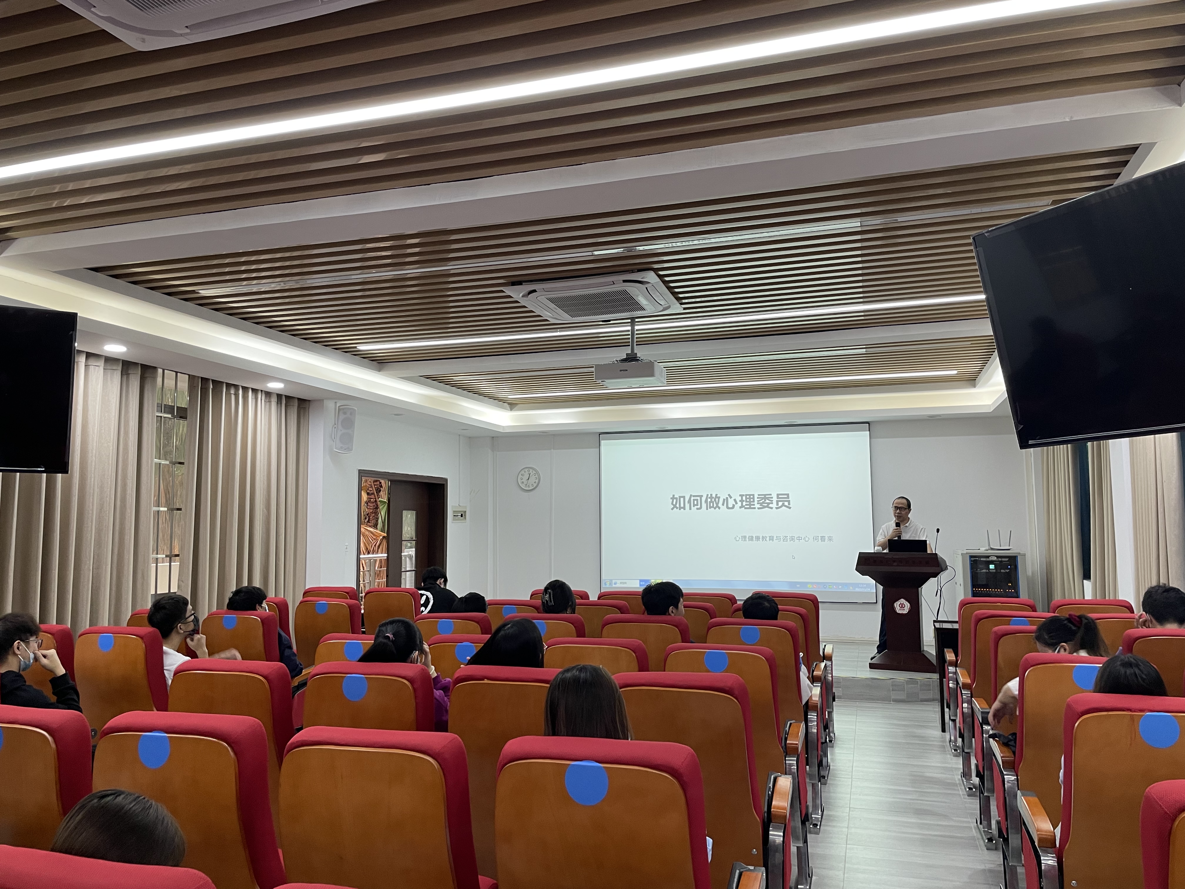 何春来老师对于如何成为一名称职的心理委员发表了精彩的演讲。从心理委员设立的必要性,到心理委员的工作原则和职责,还有心理委员所需掌握的各种技能。参会的心理委员进一步认识到对心理危机识别以及处理的重要性,充实了相关的心理知识储备,掌握了一定的危机处理方法,在提升危机处理能力的同时也更明确了自己的责任。