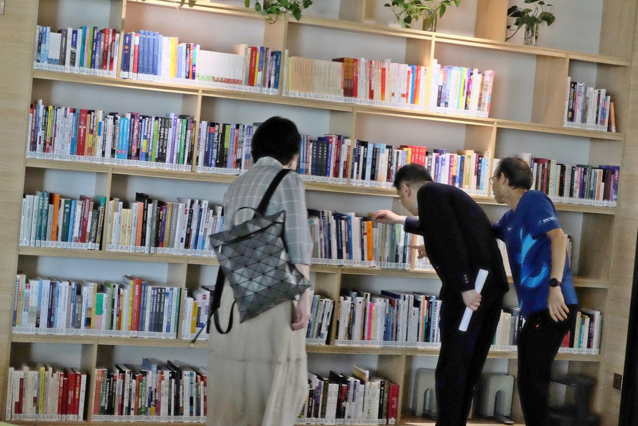 评估组专家考察图书馆城乡规划专业书籍借阅室