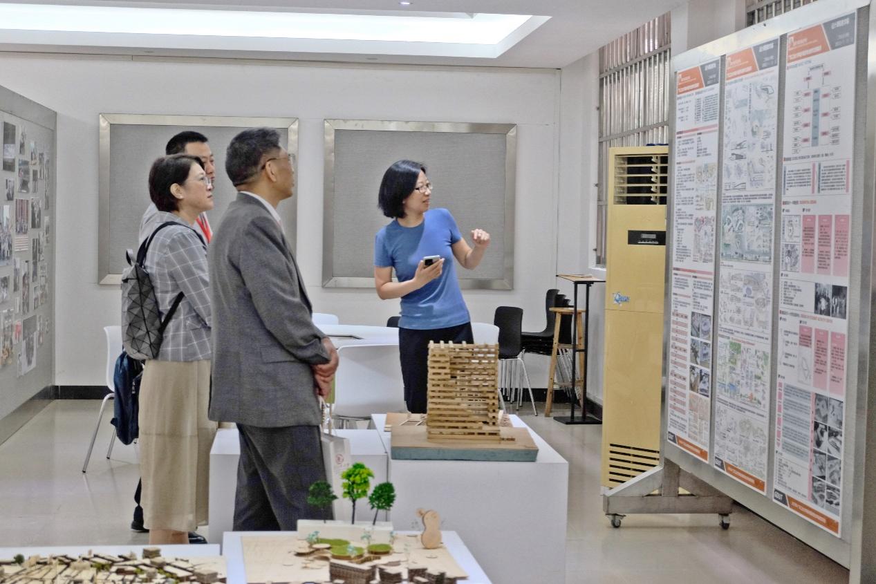 接着,专家组巡视校区办学条件、教学设施、校园管理情况,分别参观了图书馆建院专区、专业教室、科研实验室、教学实验室、教学过程展。院长蔡云楠分别从社会影响、竞赛获奖、设计课程工作坊、质量工程和教改成果等方面向督察专家进行介绍。副院长何韶颖分别从社会影响、竞赛获奖、质量工程和教改成果等方面向督察专家介绍相关内容。葛润南老师从设计类教学成果、特色教学等方面向督导专家介绍展板内容。