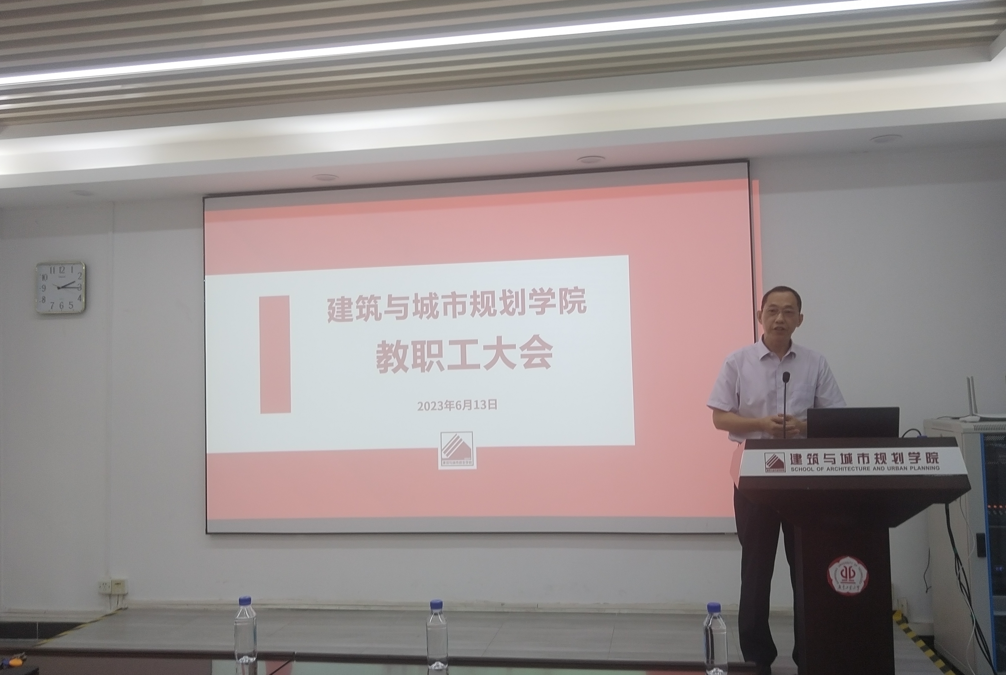 学院副院长廖开怀介绍了本学期硕士研究生招生情况、研究生培养方面的重点工作、建筑学硕士点评估准备工作以及实验室等方面的工作。