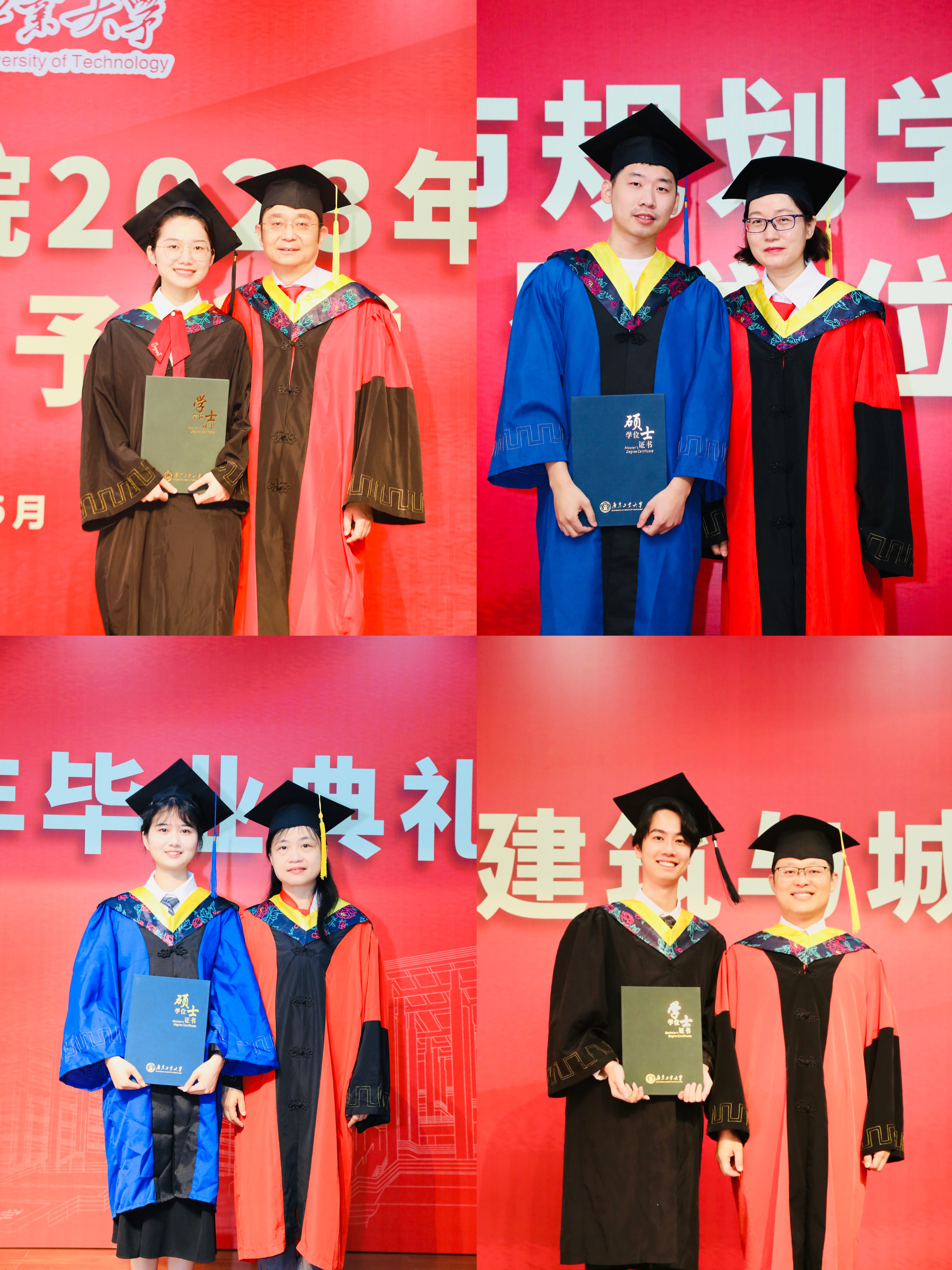 典礼结束后,举行学位授予仪式,蔡云楠教授宣读了《关于授予硕士、学士学位的决定》。随后蔡云楠教授、江海燕教授、何韶颖教授、廖开怀副教授与毕业生亲切握手、拨穗正冠,授予毕业生学位并合影留念。