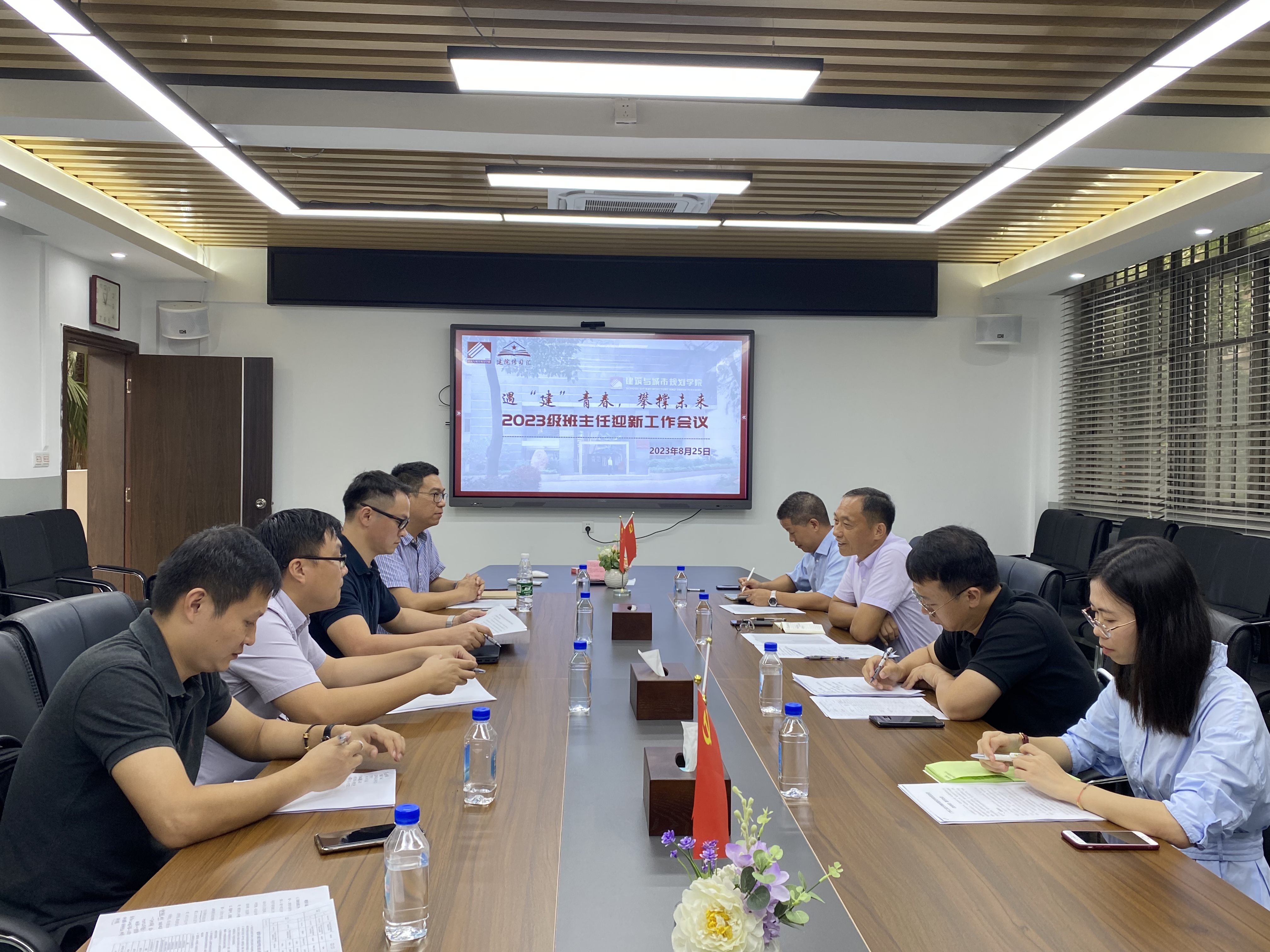 在1号楼311召开主题为“遇‘建’青春,攀撑未来”的2023级班主任迎新工作会议。学院党委书记王伟文、党委副书记李晓伟、2019级建筑学2班班主任谢超、2022级城乡规划(国土空间规划创新班)班主任符天蓝、2023级辅导员李佩璇和新生班主任参加会议。