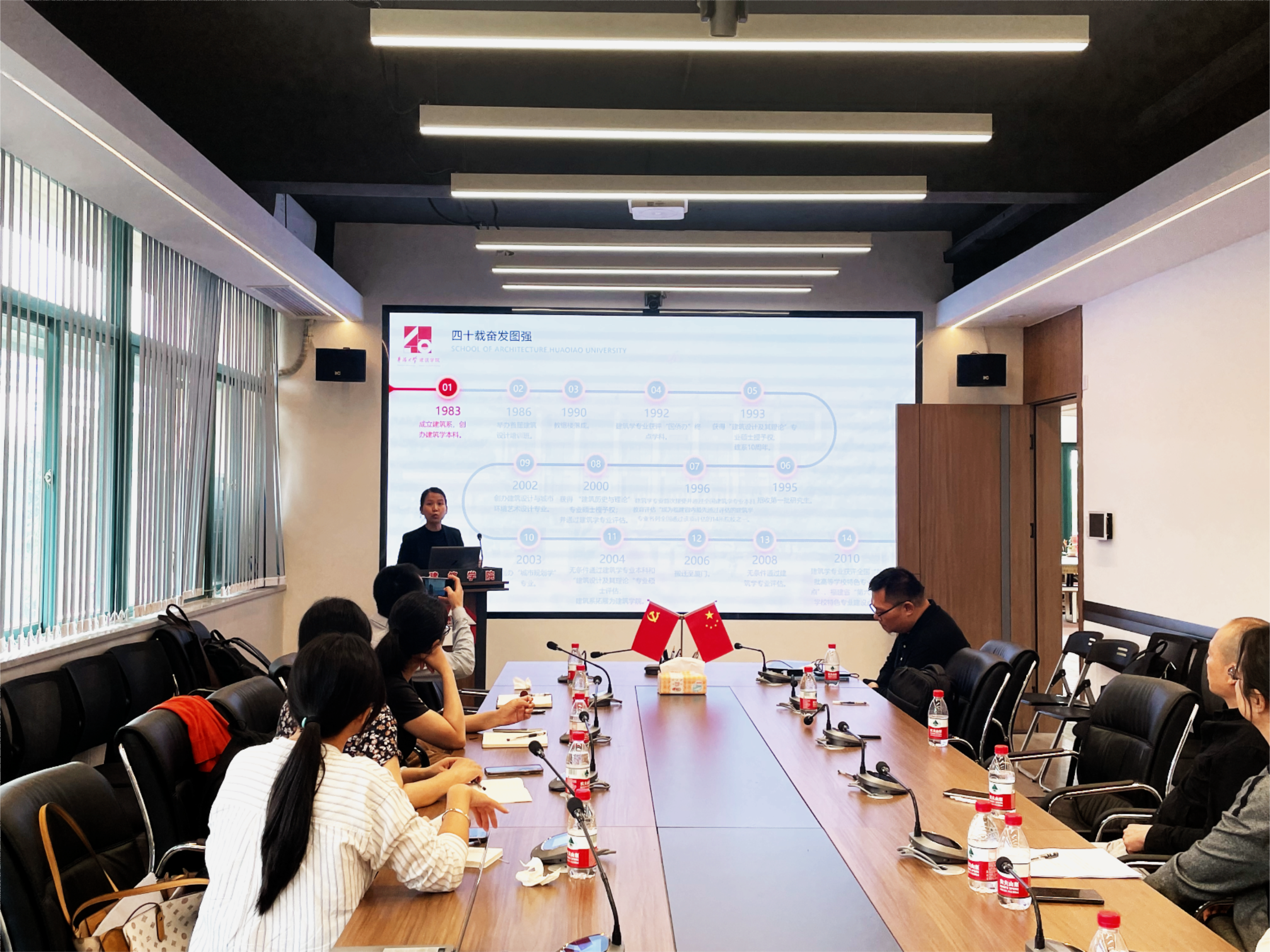 发展历程、教学理念、课程设置以及在建筑教育和科研方面所取得的成就。华侨大学建筑学院薛佳薇副院长分享了学院在建筑教育领域的最新发展和研究成果,她特别指出华侨大学在融合传统建筑教育与现代技术的创新方面所做的努力,以及学院致力于培养学生综合设计能力和创新思维的教育理念。此外,薛佳薇副院长还带领参观了学院的一些先进教研空间。其中包括配备最新技术的智慧教室,能够提供高效互动学习环境;虚拟仿真实验室,用于增强学生对建筑设计和建造过程的理解;以及智能建造实验室,这里展示了建筑行业的最新科技应用,如BIM技术、3D打印和自动化建造技术等。