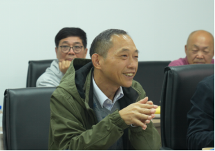 曾任华南建设学院东院工会主席的梁佩章分享了自己与学校的故事。他回忆当时全国百废待兴,建筑材料十分紧张,老师们想尽办法来拿到钢材和水泥指标用于学校建设。他表示虽然环境艰苦,但大家都得到锻炼并快速成长了起来。