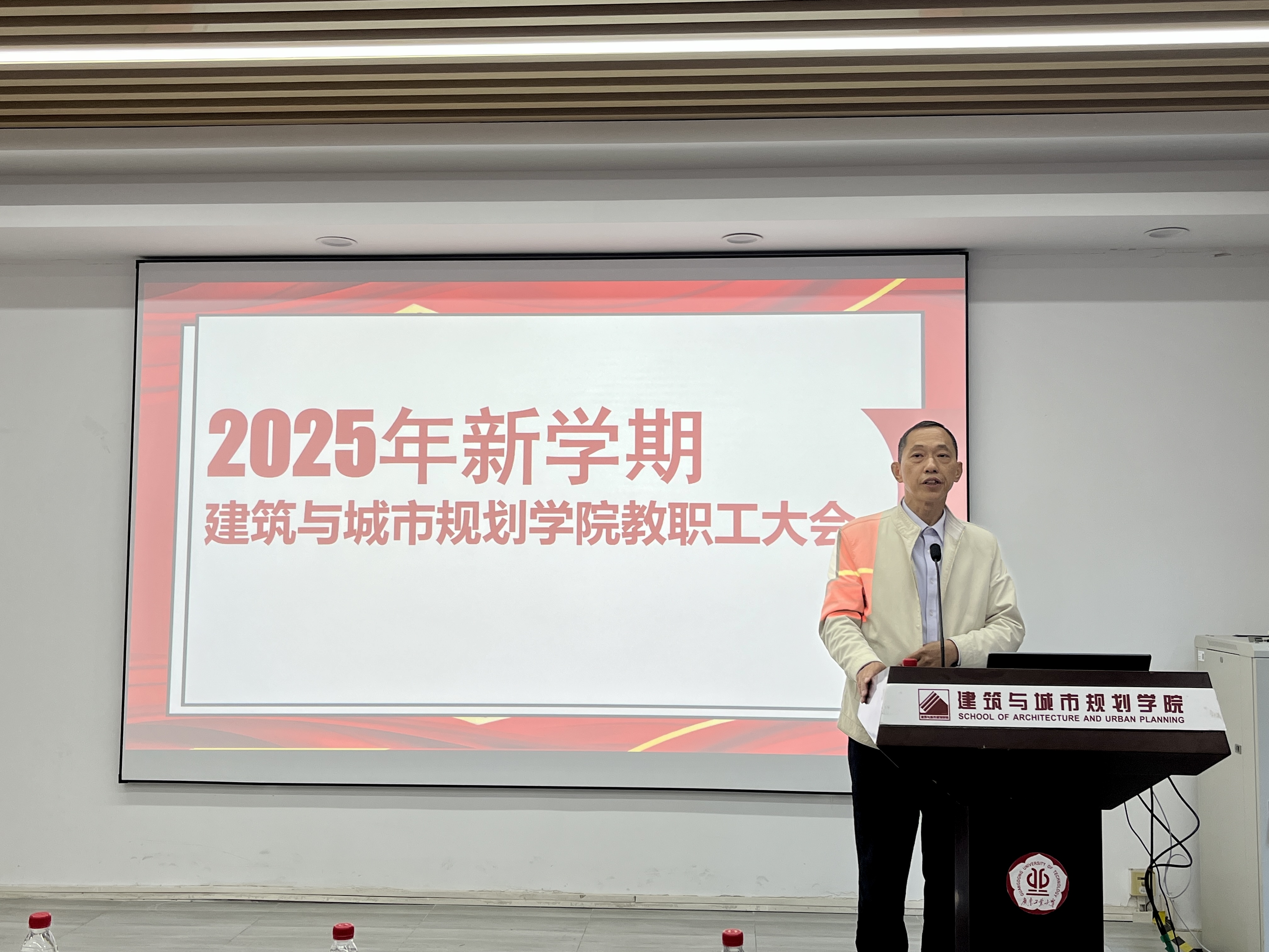 在东风路校区2-314报告厅召开2025年新学期教职工大会。学院全体教职工出席了会议。会议由学院党委书记王伟文主持。