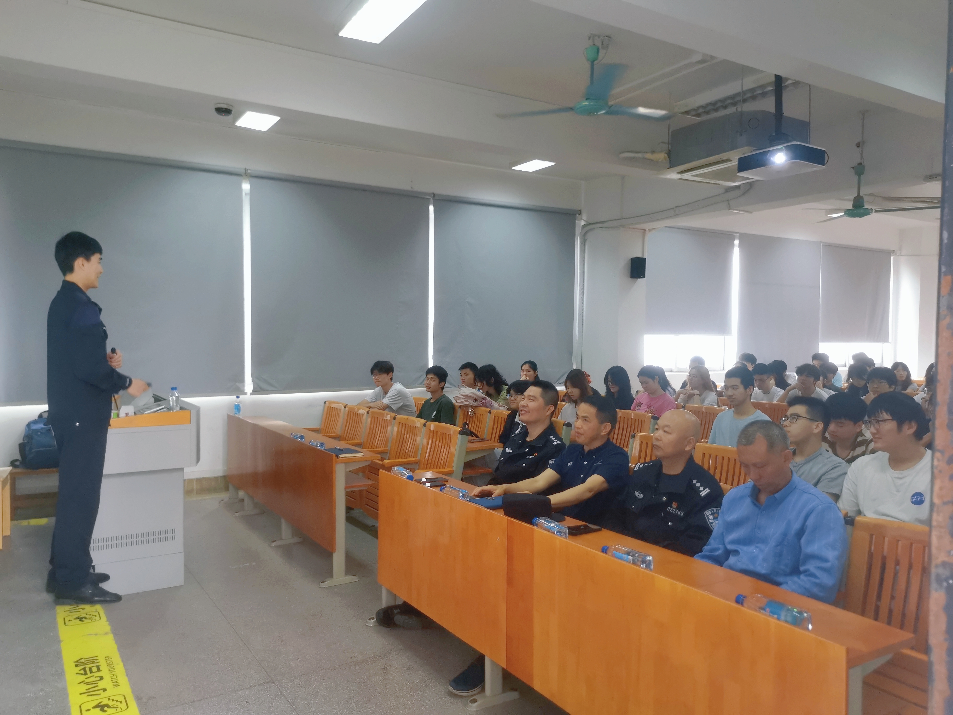 为深入学习防范电信网络诈骗知识,增强学生安全防范意识,2025年4月10日上午,由广州市越秀区公安局主办的“反诈安全宣讲进校园”活动在7号楼701顺利举行。越秀区黄花岗派出所杨教导员、专区民警徐警官、学校保卫处副处长梁文锦、保卫处科长梁贵荣、辅导员董泽豪、学院2024级同学共同参与此次活动。