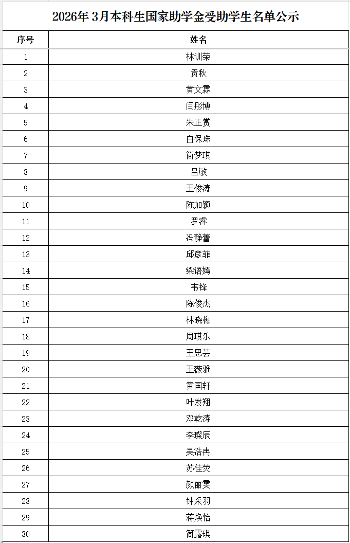 嗨皮漫画 2026年3月本科生国家助学金受助学生名单公示