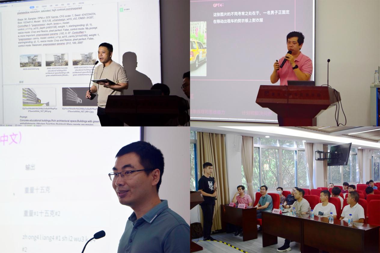 蔡耀华校友及其建筑设计团队对AI图像生成工具Stable Diffusion进行现场使用演示,展示了其在商业建筑设计中的实际应用情况,还重点演示了使用不同的智能模型实现同一设计效果的操作,体现了AI图像生成工具生成成果的差异化。简灼均先生对AIGC——生成式人工智能技术的商业应用进行了讲解,分析了未来可能受AIGC技术影响的行业,他还对同类技术和相关应用进行了全面的例举,让同学们对AIGC行业有了更深的理解。雷延强博士介绍了文字转语音与文字生成图像的基本技术原理,详细讲解了现有语音合成框架的主要内容。
