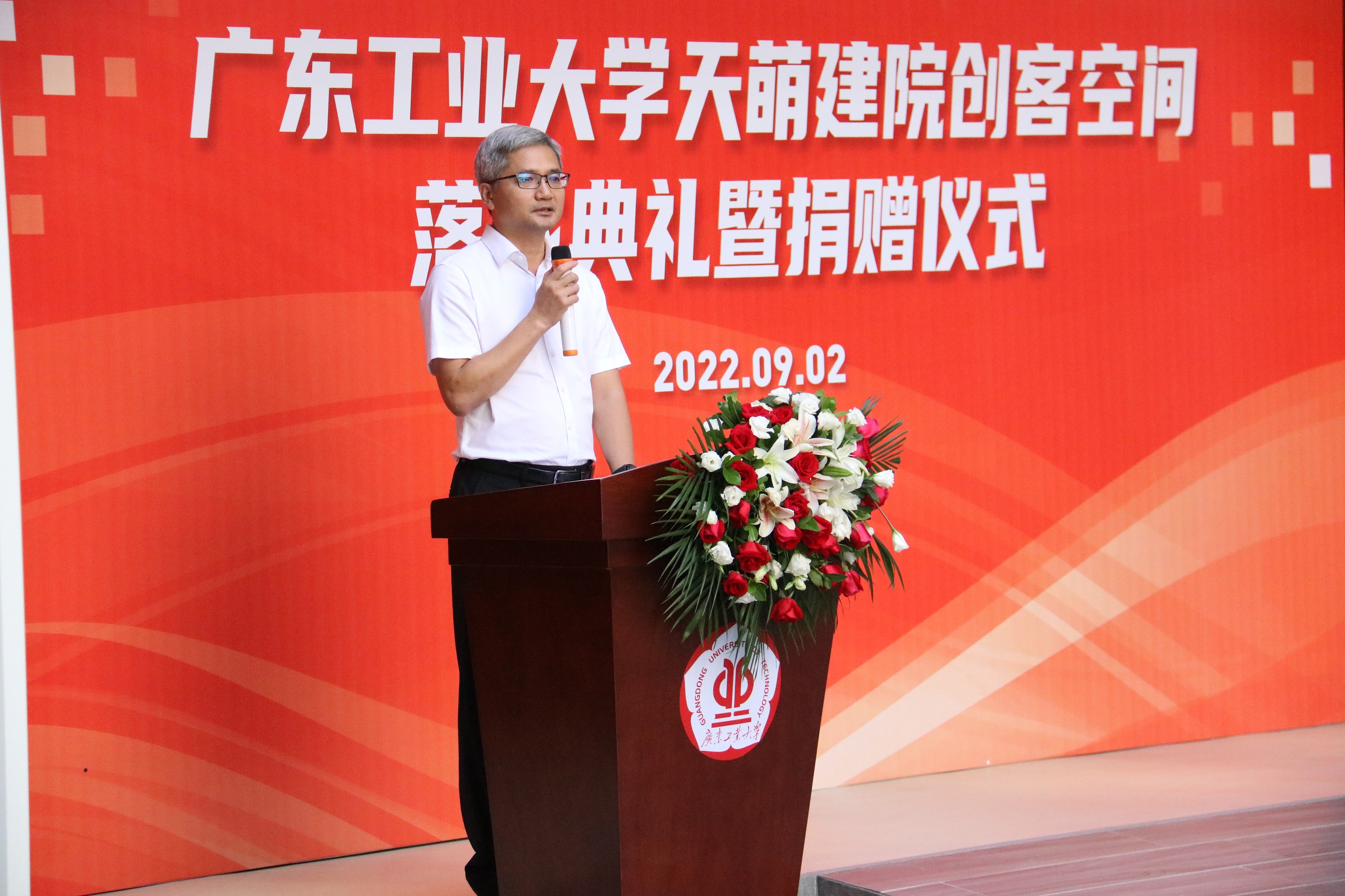 陈宏良董事长介绍了公司的发展理念和发展现状,详细分享了天萌建院创客空间的设计改造及环境美化工作的开展情况。他表示随着国家大力推进产学研合作,产业、高等院校、科研机构的相互配合,发挥各自优势,形成强大的研究、开发、生产一体化的先进系统并在运行过程中体现综合优势。天萌与广工建院长期保持良好的校企合作关系,企业方愿意与学校继续深入校企合作,推进产学研合作,希望能为学校发展贡献一份力量。