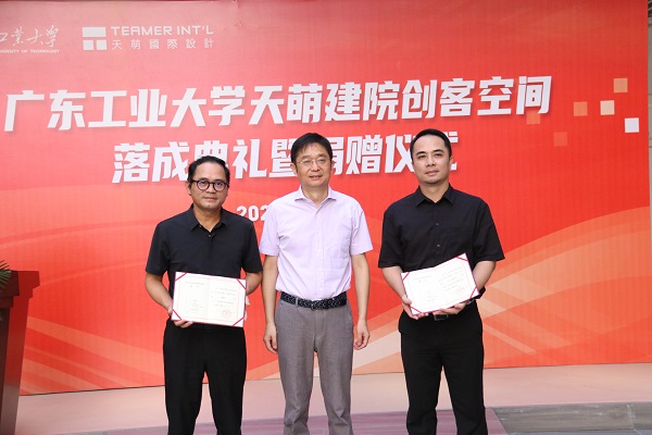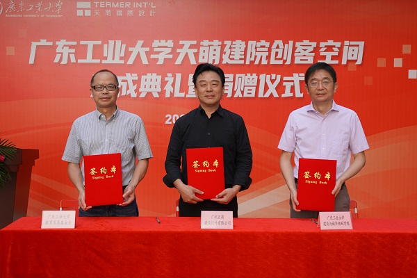 9月2日上午,天萌建院创客空间落成典礼暨捐赠仪式在东风路校区隆重举行。学校党委常委、副校长陈卓武,学校党委常委、宣传部部长张育广,后勤管理处处长赖惠彬,对外联络与校友事务办公室主任何振炎,创新创业学院副院长许金镇,广州天萌建筑设计有限公司董事长陈宏良、总裁颜家国,学院党委书记钟兆明、院长蔡云楠、副书记李晓伟和师生代表出席典礼。活动由学院副院长何韶颖主持。