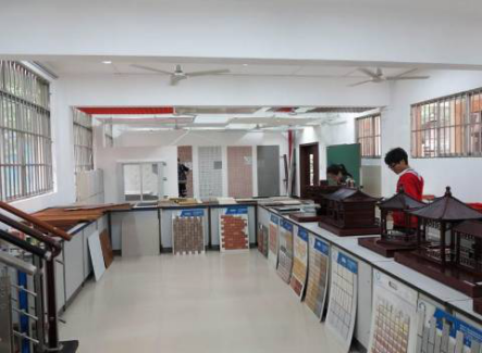 展示各种建筑材料、楼地面、天花、墙面、台阶、玻璃幕墙等构造节点的做法。拥有200余件示教模型。
